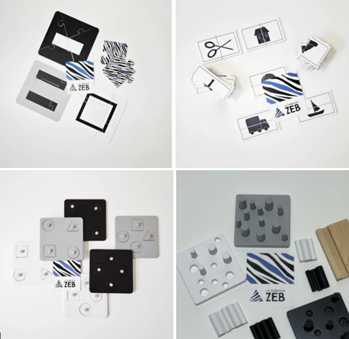 La Fabrique ZEB designs specialized progressive conceptual materials such as conceptual puzzles, conceptual diagram games, wooden puzzles, conceptual introductions to conventional games, tools to support conceptual visual pursuit and motor skills, and much more.