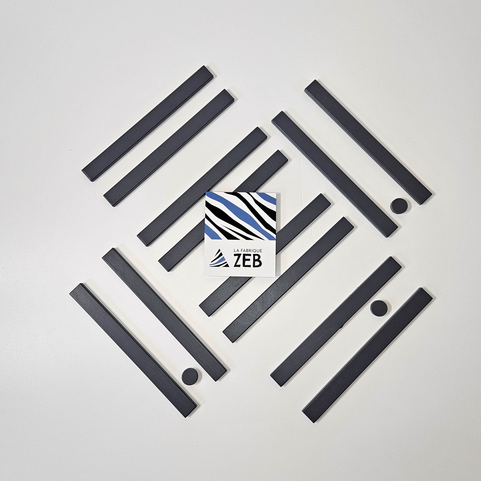 - 12 flat wooden rods and 3 round magnets