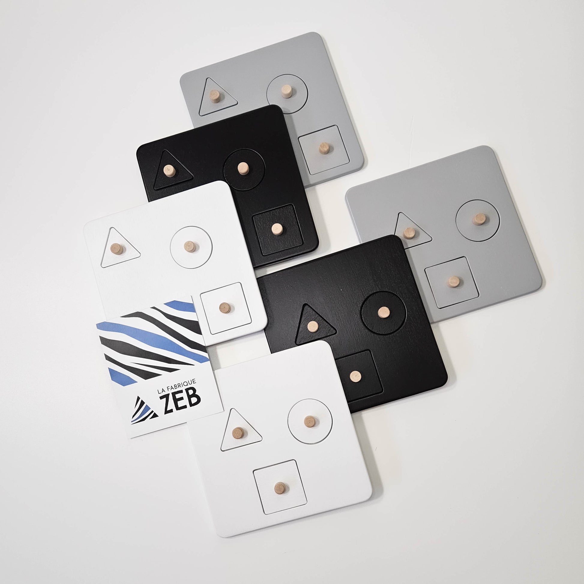- Each of the insertable geometric shapes is interchangeable with all the boards